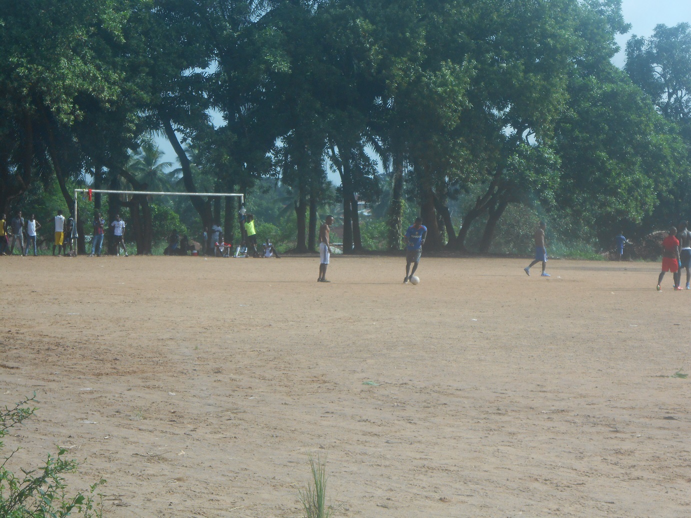 A margine campo i giocatori dichiarano la loro soddisfazione: mentre in Italia ricomincia il campionato di calcio, in Sierra Leone il governo ha appena tolto la restrizione che impediva di giocare a pallone, uno dei tanti provvedimenti adottati più di un anno fa per evitare le occasioni di aggregazione e arginare così l’epidemia di Ebola che dilagava; nelle provincie sierraleonesi si torna finalmente a giocare, sui campi in terra battuta o, in piena stagione delle piogge, nel fango. A Makeni, alle 6e30 am, una massa entusiasta, dopo un lungo digiuno, ha ricominciato a correre dietro a un pallone, a ridere e a passare momenti leggeri in compagnia. Il 25 Agosto è stato dimesso l’ultimo paziente noto affetto da Ebola, ed è cominciato il conto alla rovescia dei 42 giorni che porteranno a dichiarare il paese libero dal virus. Il 30 agosto è stato individuato un nuovo caso e il conto alla rovescia dovrà essere di nuovo rimandato. Tuttavia oggi in Sierra Leone l’importante è che si possa ricominciare, non ne vedevamo l’ora.
