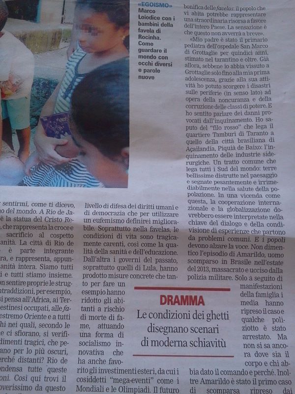Rassegna stampa Finestra sulla Favela, Marco Loiodice